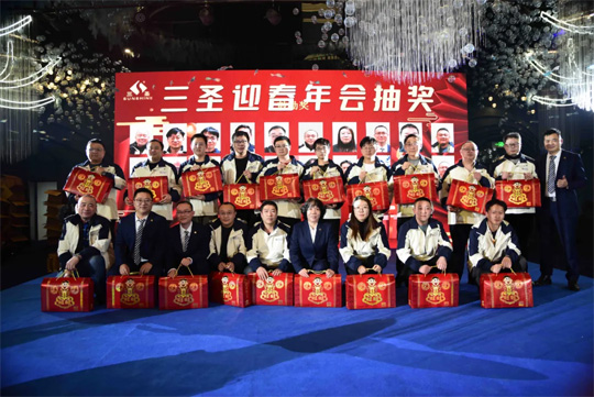 會場的三圣人很快樂,但也不能忘了依然在各個工地中堅守崗位的其他同事。通過現(xiàn)場視頻聯(lián)系,也向他們送去了新春的祝福。